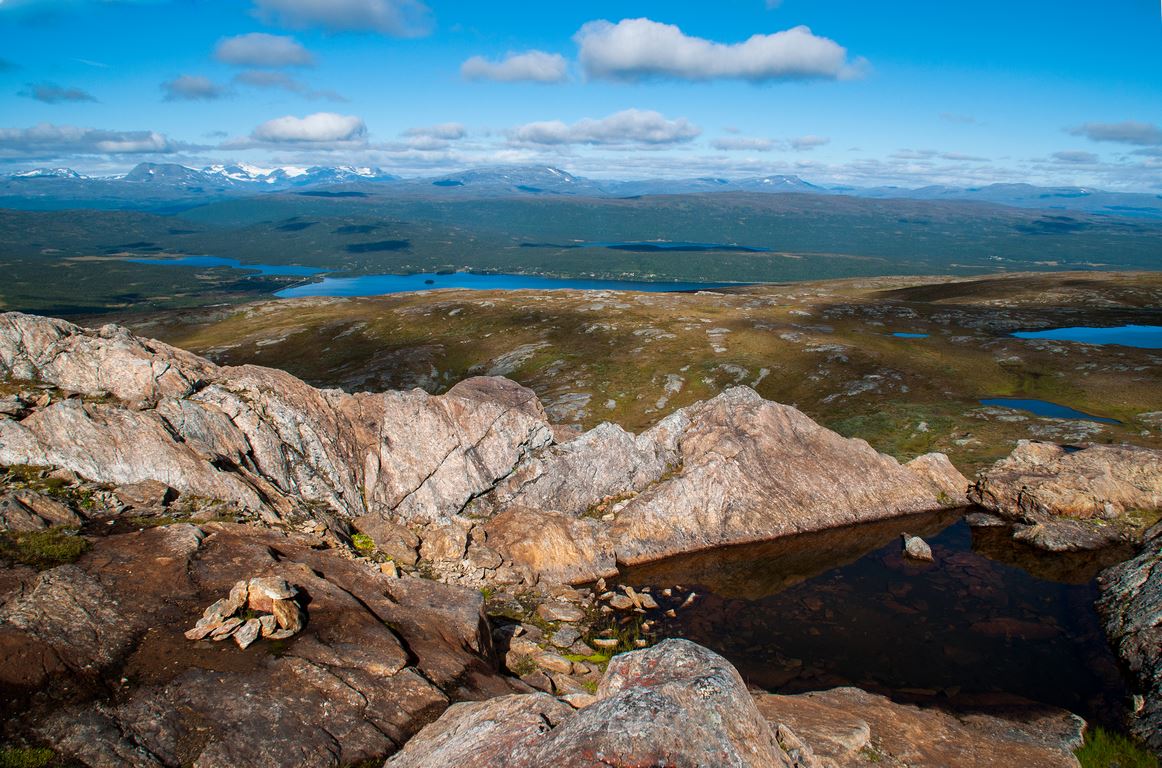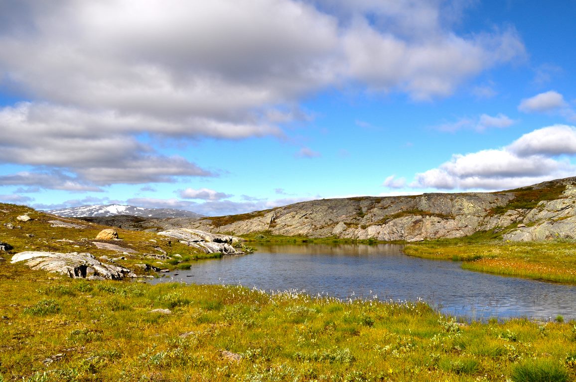 Cały teren poprzecinany jest mniejszymi i większymi strumykami oraz oczkami wodnymi. Szwecja to kraina 100 tysięcy jezior, więc niebieskie akweny idealnie wkomponowały się w krajobraz lapońskich gór. Gdzieniegdzie na zboczach pagórków pasą się renifery. Sceneria prosto ze skandynawskiej baśni.