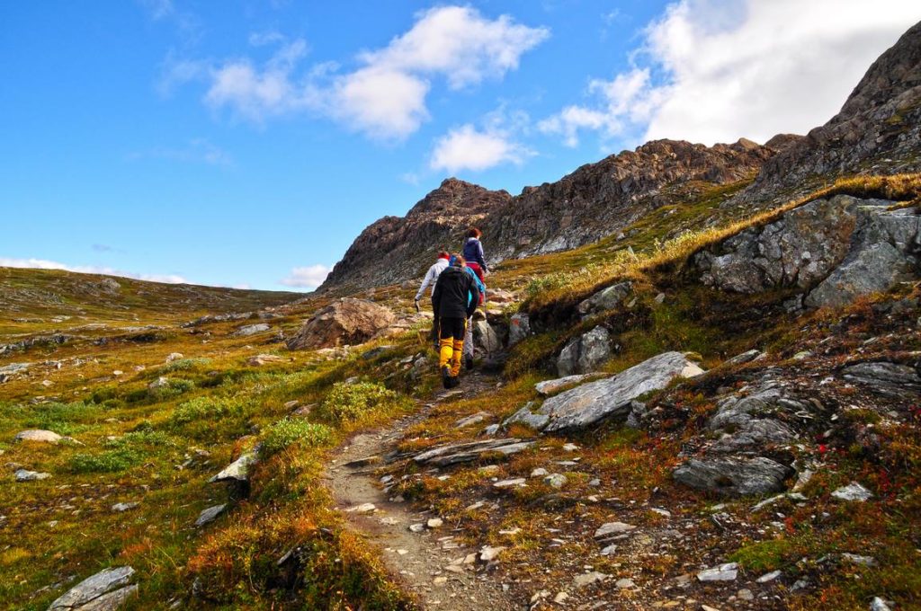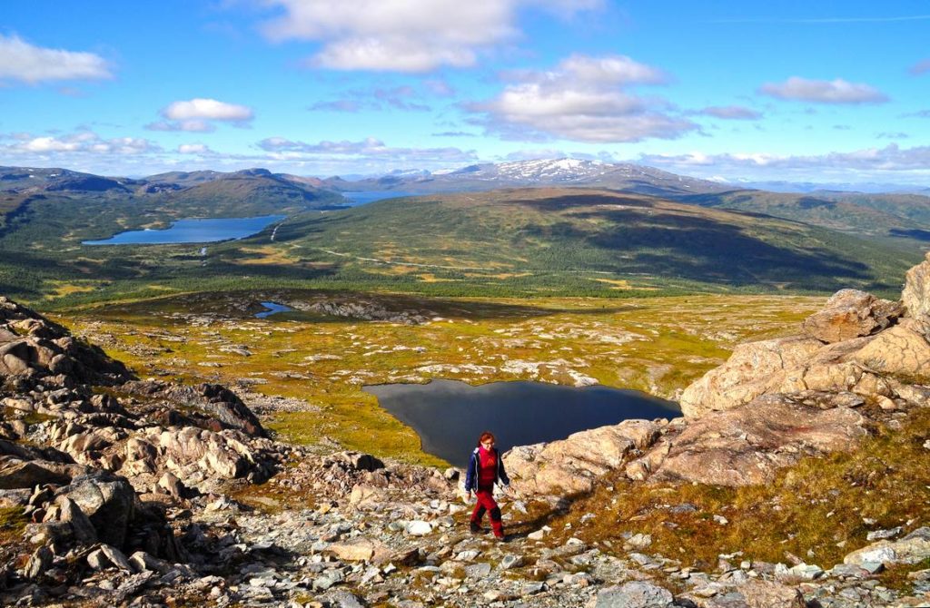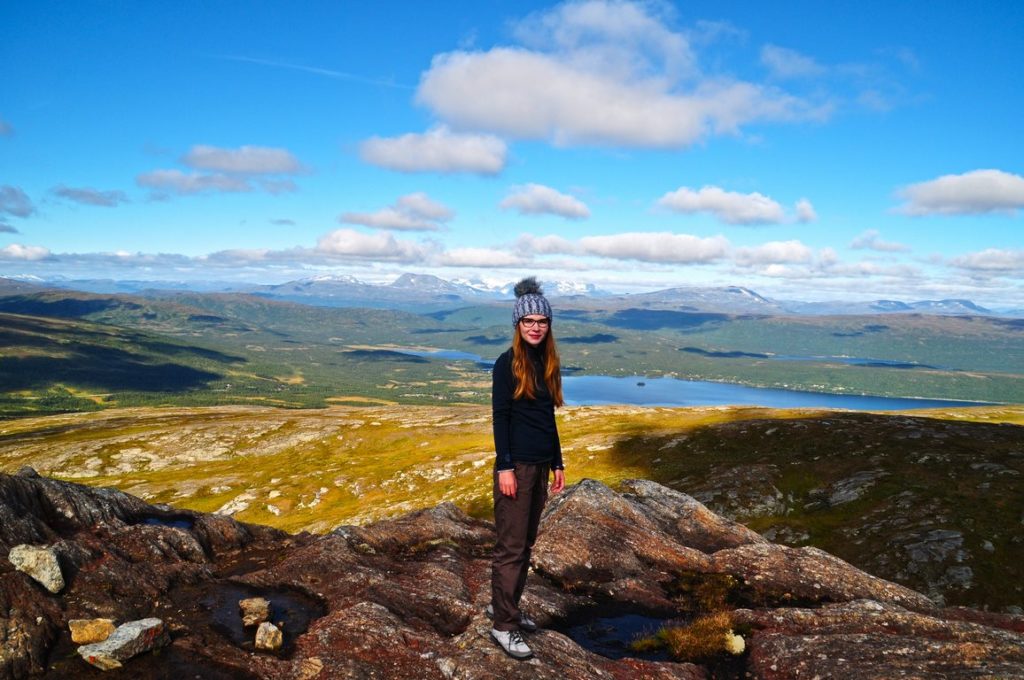 Dojście na szczyt Atoklinten nie wymaga większych umiejętności, ani specjalistycznego sprzętu. Nawet osoba o przeciętnej kondycji powinna wdrapać się na górę bez trudności. Zazwyczaj perspektywa bajecznych widoków dostępnych tylko na szczycie stanowi dla mnie największą motywację do posuwania się do przodu, nawet jeśli czuję, że przekraczam już swoje granice zmęczenia. Przestrzeń i oszałamiające krajobrazy traktuję jako kuszące i warte wysiłku wynagrodzenie. Podczas wycieczki na Atoklinten nie trzeba się o to przesadnie starać, bo piękna okolica gwarantuje estetyczne doznania na wyciągnięcie ręki. Wystarczy przejść się kawałek pod górkę, a potem obrócić, żeby zobaczyć lapońskie szczyty otulone u podnóży ogromnym i intensywnie błękitnym jeziorem. Później jest tylko lepiej.