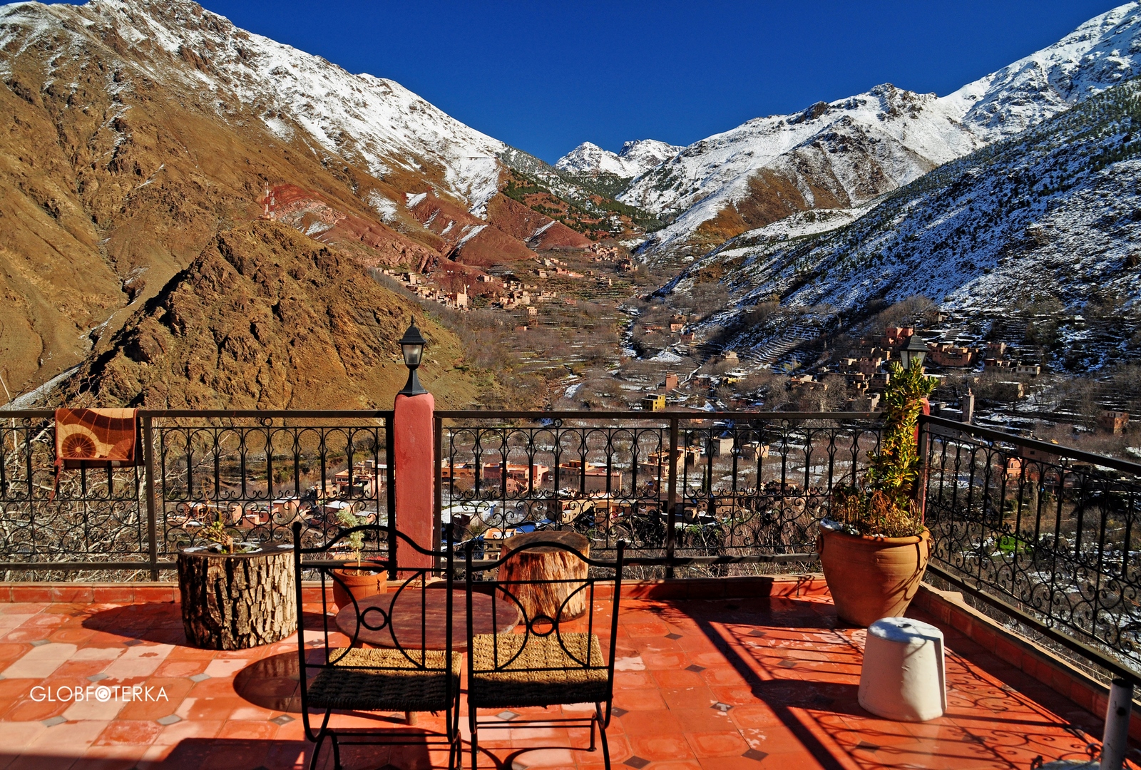 Następnego dnia obudziłam się z fantastycznym widokiem na góry Atlas. Przez okno umieszczone naprzeciwko mojego łóżka obserwowałam intensywnie niebieski odcień nieba i skąpane w słońcu szczyty. Jeden z najpiękniejszych widoków, jakie kiedykolwiek miałam przyjemność podziwiać z pokoju! Góry na dzień dobry zawsze wywołują u mnie uśmiech i są skuteczną zachętą do zerwania się z łóżka. Ładują po prostu solidną dawką pozytywnej energii ?.