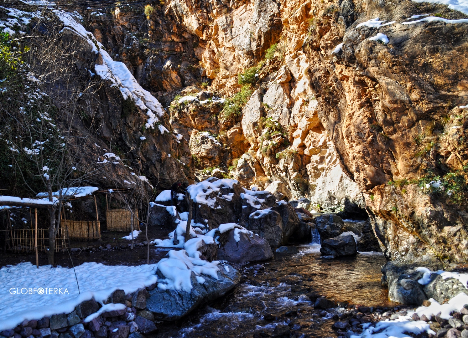 Największą atrakcją Imlilu jest niewątpliwie otaczający go Atlas Wysoki. Wystarczy przejechać 60 km z najsłynniejszego, marokańskiego miasta i można znaleźć się w zupełnie innym świecie, w którym króluje natura. Wybranie na swój nocleg wysoko położonej riady odpłaci się bajecznym widokiem na cały Imlil i majestatyczne góry. W takich okolicznościach można naprawdę odpocząć. Oprócz podziwiania krajobrazu z tarasu, można też wybrać się na spacer po okolicy. Przyda się wygodne obuwie, bo może być bardzo ślisko, ale nawet w adidasach, czy butach na lekkim koturnie da się przejść bez skręcania sobie nóg. Mimo wszystko lepiej tego nie robić ?. Chyba, że tak jak ja nie ma się wyboru, bo wzięło się jedną parę butów. Dzięki takiemu spacerowi odkryliśmy na przykład ukryty pomiędzy skałami wodospad. Zawsze też można zapytać pracowników miejsca noclegowego o znajdujące się w pobliżu trasy i interesujące miejsca.