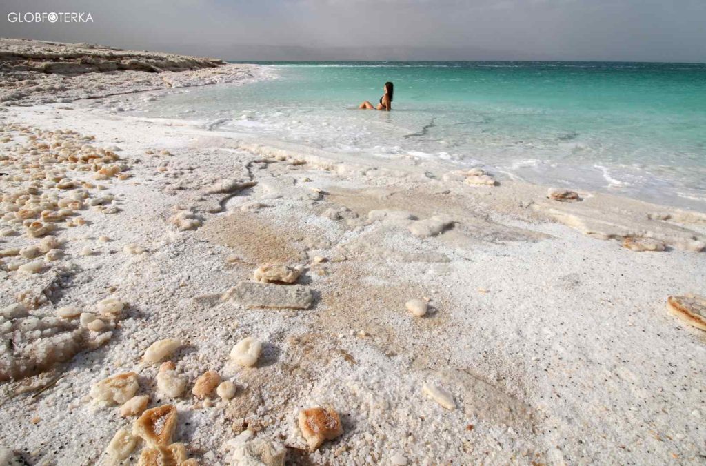 Klapki/buty do pływania przydadzą się już w wodzie i na brzegu. Obsypane solą wybrzeże jest wyjątkowo kłujące. Lepiej się nie skaleczyć, bo nawet najmniejsza rana będzie niemiłosiernie piekła w słonej wodzie. Z tego względu lepiej nie depilować się, ani nie golić w tym samym, albo nawet poprzedzającym dniu. Będzie szczypało, uwierzcie ?. Przekonałam się o tym na własnej skórze w Izraelu. Już lepiej mieć kilka włosków za dużo niż cierpieć w Morzu Martwym.