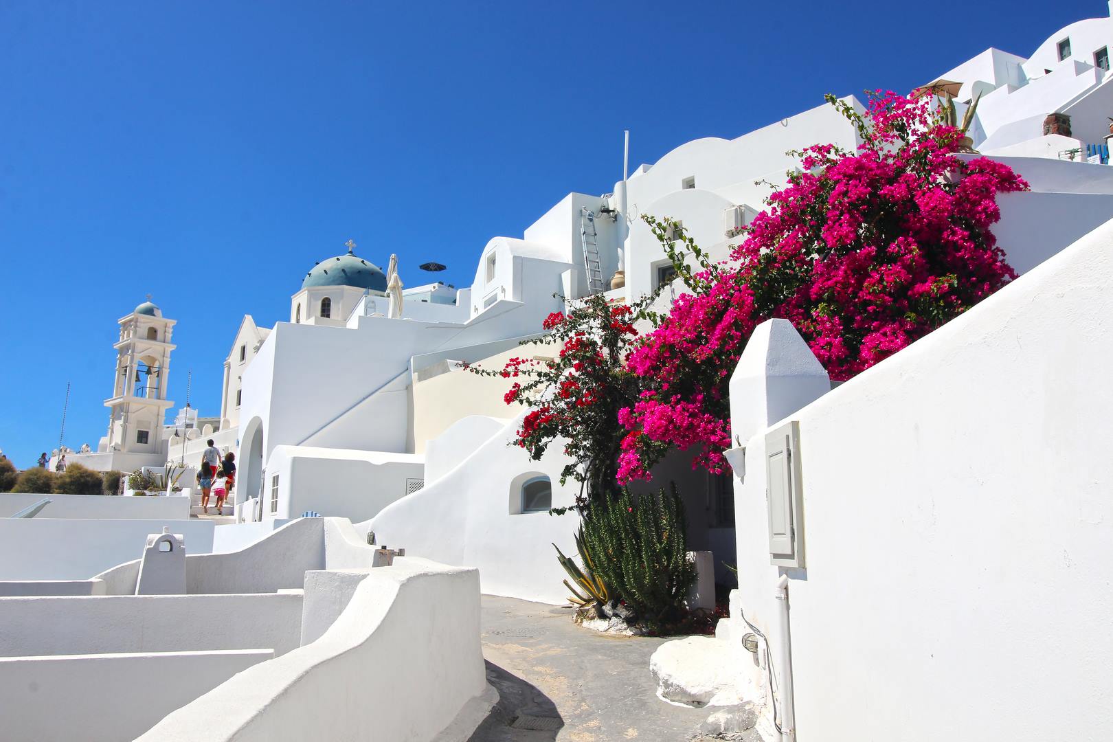 Obraz stromo zawieszonych nad morzem śnieżnobiałych budynków, spomiędzy których wystają błękitne kopuły kusi turystów z całego świata. Spektakularne zachody słońca, które najlepiej podziwiać w miejscowości Oia (czyt. “ija”) potrafią dostarczyć całej gamy uczuć. Po zagubieniu się w uliczkach dwóch najsłynniejszych miejscowości Oii i Firy warto zajrzeć do mniej obleganych miasteczek: Firostefani, Imerovigli, Megalochori, Emporio czy Pyrgos. Każde z nich ma swój odrębny charakter i atmosferę.