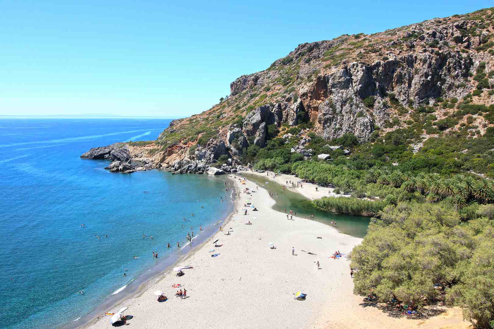 Trzymając się południa Krety, warto również zajrzeć na plażę w Preveli oraz przespacerować się w znajdującym się tam palmowym gaju.
